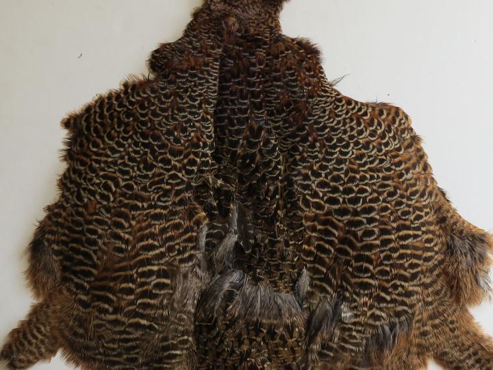 This is the same as a melanistic hen pheasant pelt except it has a bit of damage.