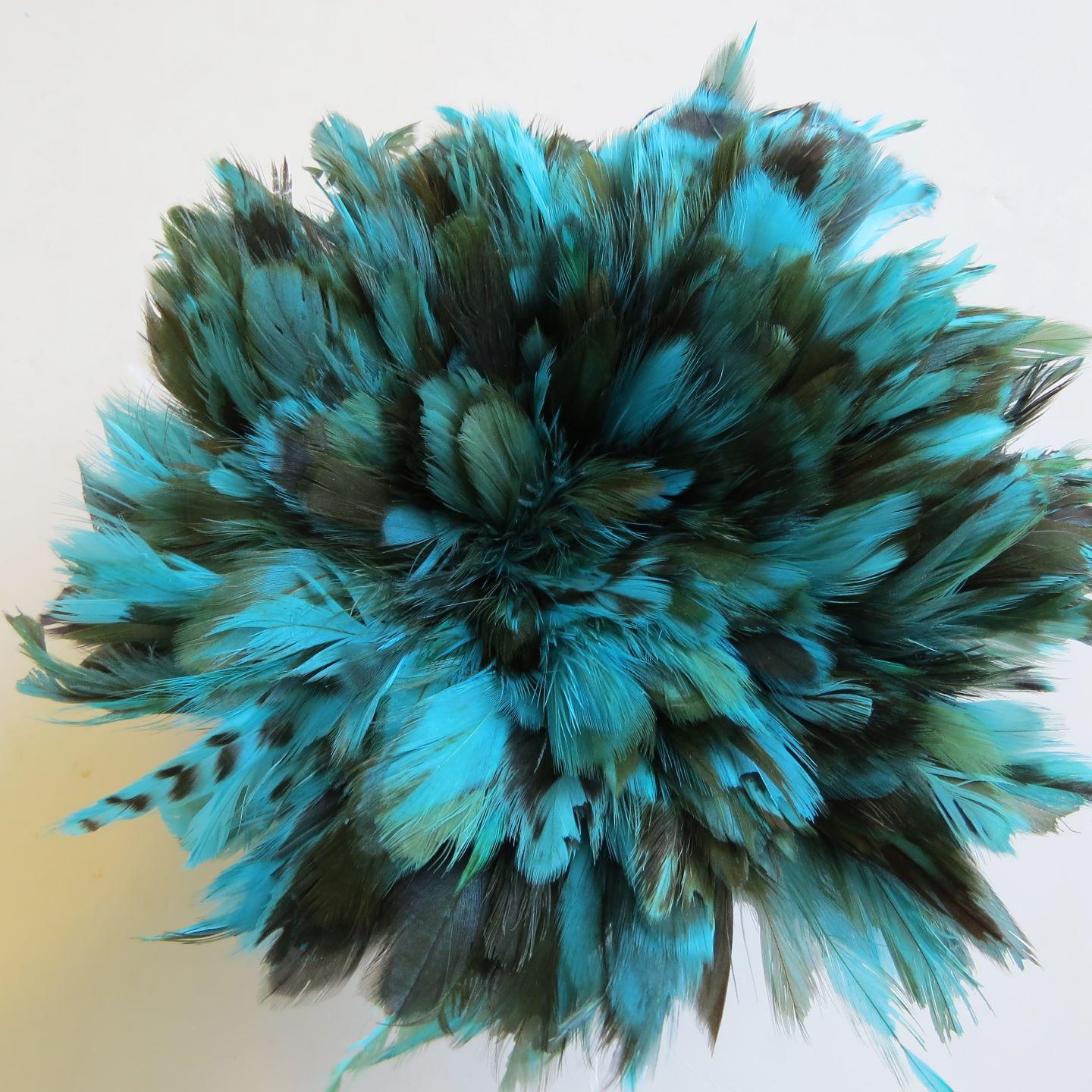 These are the same caramel cream strung schlappen feathers dyed aqua.