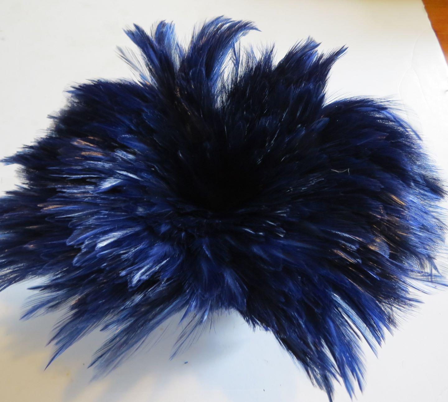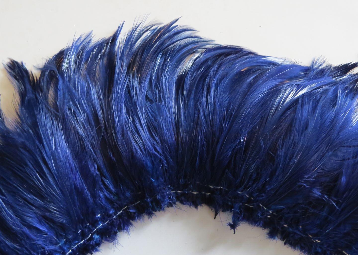 Previous Pause Next These are the same natural white rooster hackle strung feathers dyed dark blue. Approximate length: 10 - 14 cm Species: Rooster (chicken) Price NZ$35.00 Strings 1 m Quantity