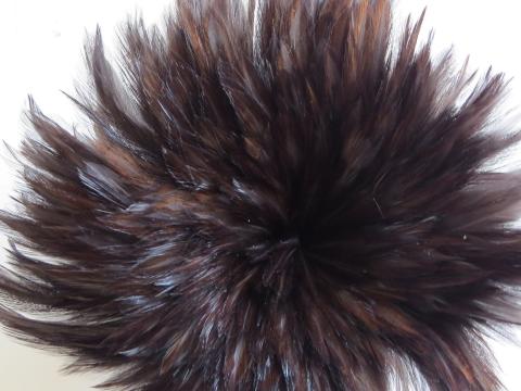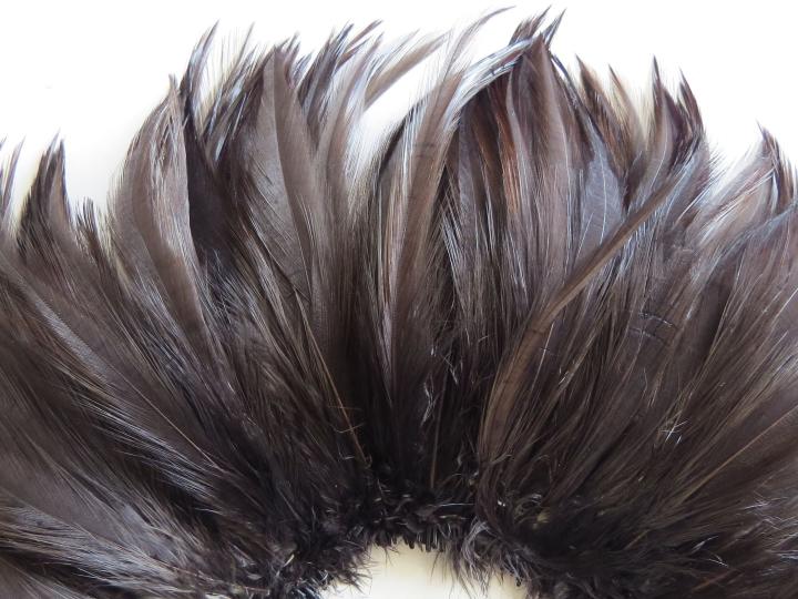 These are the same natural white hackle strung feathers dyed a dark chocolate brown.