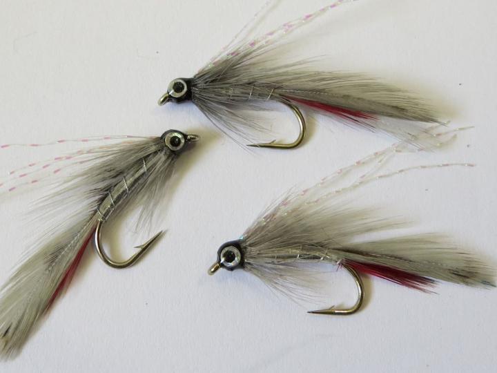 This is the short-shanked version of the very popular grey ghost jigging smelt. The bit of UV flash over the wing adds to the attraction.