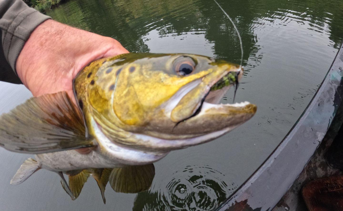 Jack brought his fly rod this time. It still had a short shank Taupo Tiger jigging smelt on since the last time he used his rod. The leader was crappy but he put it in the water. It was not long before he caught a nice brown on it. I changed his leader up and then he used an olive and black bugger. It took a little while but he got a nice brown after missing and losing a few.