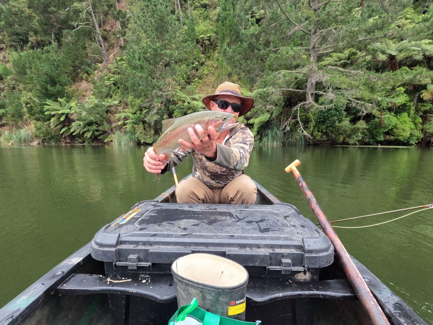Jack fished for a while while I paddled until he decided he had had enough. It was my turn to play while he paddled. It was hard work and I missed quite a few. I managed to pick up a few more fish. That included a fat rainbow on an olive bugger that went home to accompany the other two rainbows in the smoker.