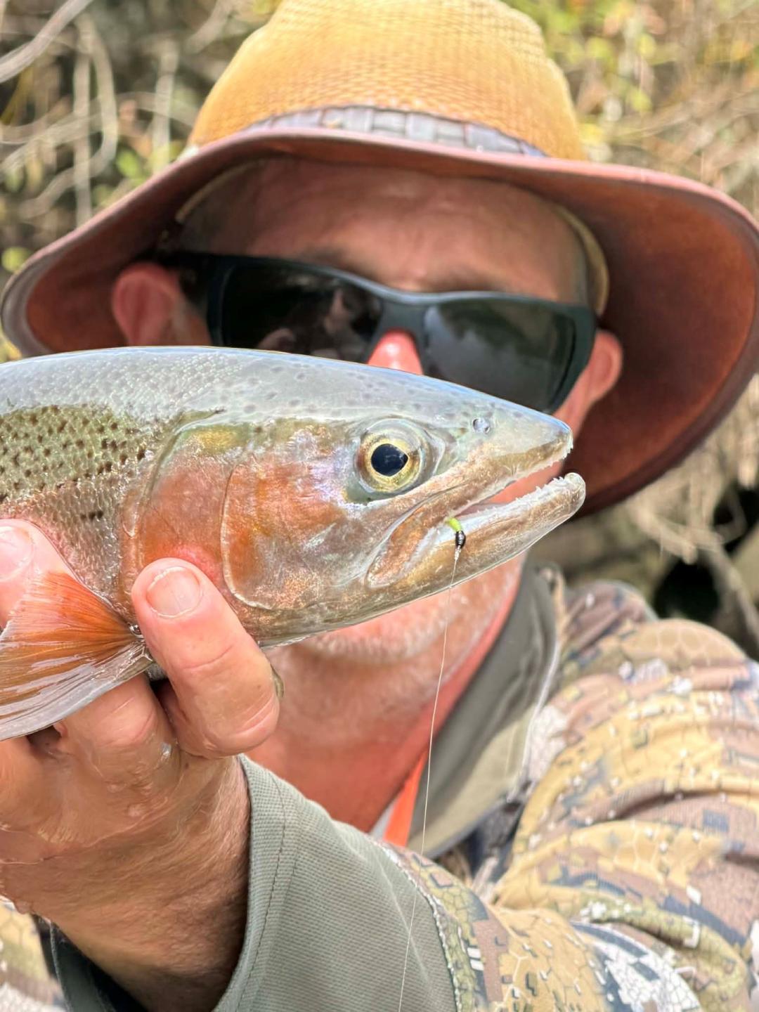 It was a beauty of a day yesterday. The river was the lowest we have seen it in ages. We went down the river with only foam line risers in mind. It is fully that time of year when the trout line up and sip flies off the surface all day long. Of course Blair had to bring a spinner and caught trout after trout while I watched for risers. We set up Blair's crappy fly rod with a rubber legged pheasant tail nymph below a parachute black cricket. They both worked. A willow grub below the cricket worked too. I had fun casting an Adams irresisitible to a sighted rainbow in a side creek. He came up so many times and rejected the fly. After about 30 drifts he took it. I made him believe there was a hatch on. In reality it was mostly caddis flies on the water today. We still used different flies such as a wasp dry and a new, bead head olive damsel nymph, and the new cdc mayfly emerger. The last fish Blair got was on an elk hair caddis, fooling a brown in crystal clear spring water. It was very impressive for Blair. We had fun and we live the best lifestyle that has ever been lived. And yes, I wade bare foot.