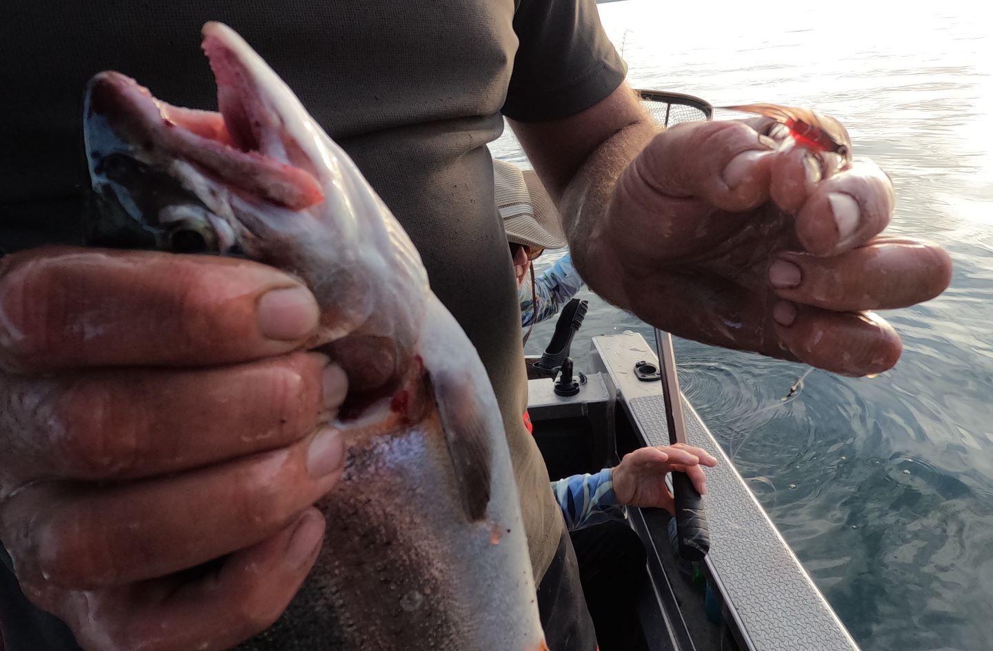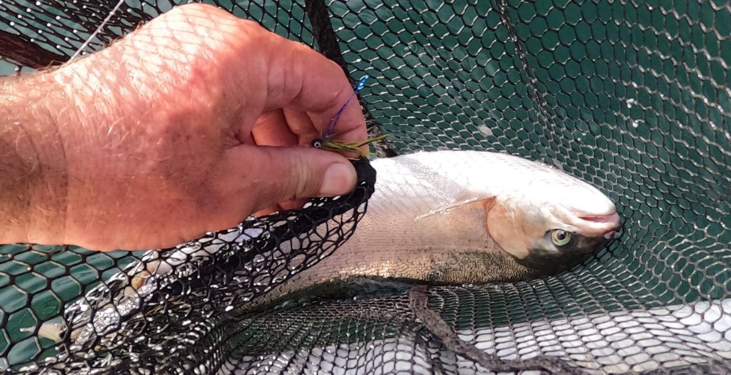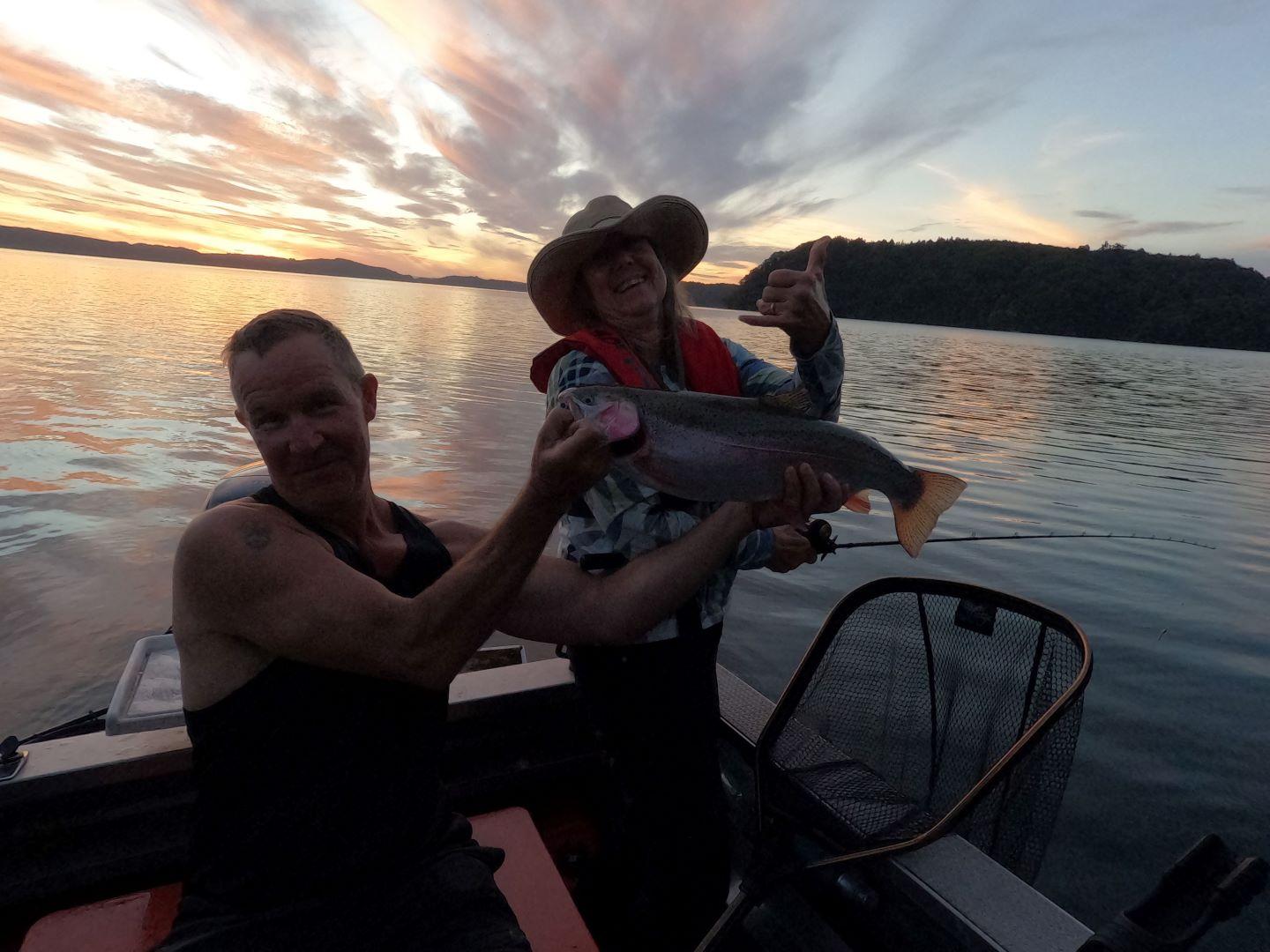 Michael took us for an evening fish on Rotoiti. Sylvia came along for the ride. We did not even make it past the first spot. Dozens of trout made it to the net. I was changing patterns as fast as I could and they all worked. We killed 10 and let the rest go that were unhooked easily. It took me the better part of a day to fillet and smoke them in my little hot smoker. They are the best eating trout in the world! Life is good. Frank and Sylvia had a blast. We nibbled on smoked kahawai and snapper wings that I had prepared earlier.