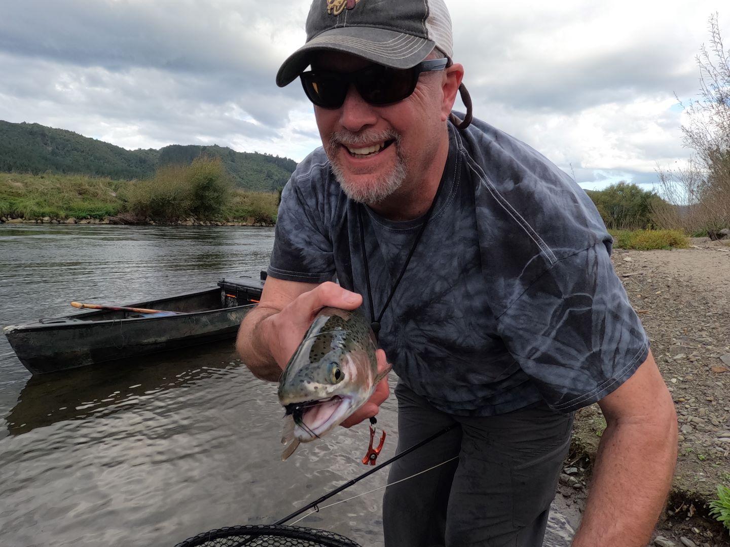 Down the river yesterday with Dan and Gail. It was all pretty much sight fishing with a dry fly. Droppers were added for effect and they worked well. It was impressive to see trout taking stimulators and cicada patterns without inhibitions. That is impressive for April. We did a couple of nymphing runs and got a few others. They really loved casting to rising trout and seeing the slow takes!