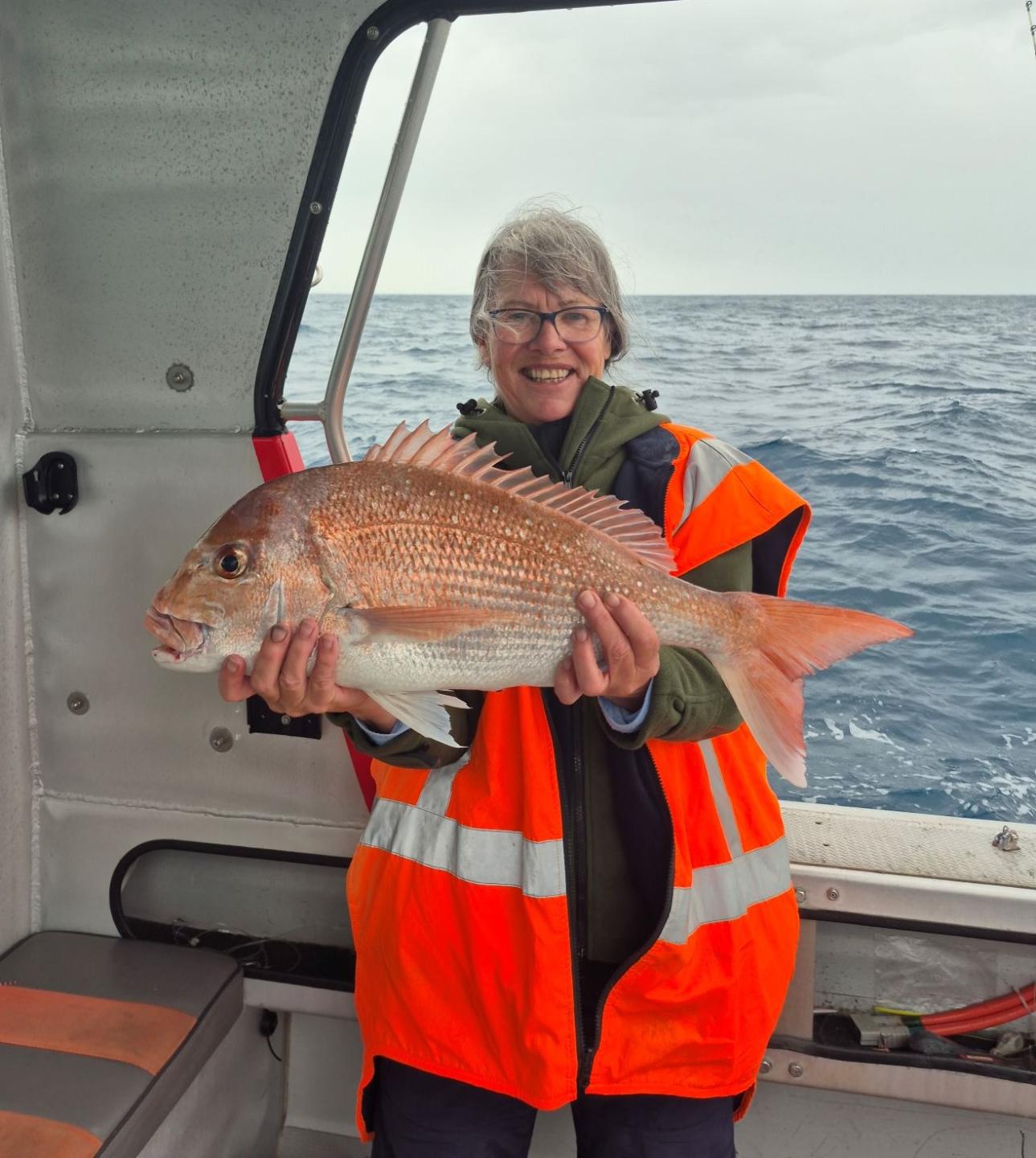 Yesterday, we were going deep for bluenose. We got over the Whakatane bar and realised we were not going to White Island. The sea was sloppy. We got to 10 Mile and there was no sign. Steve decided to take us to an old snapper spot at about 40 m. It was slow but we managed three limits and some kahawai. It was still a great day to be on the water. Trish, of course, caught the most and the biggest snapper of the day.