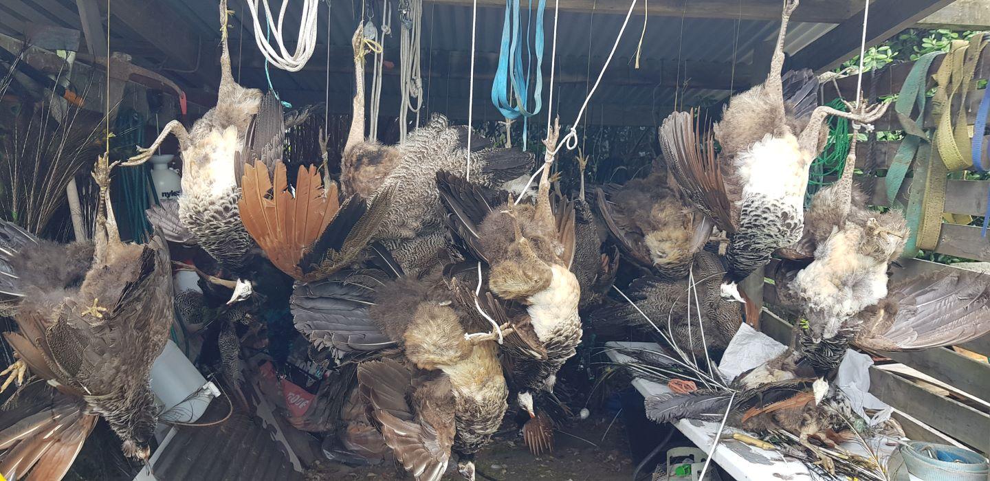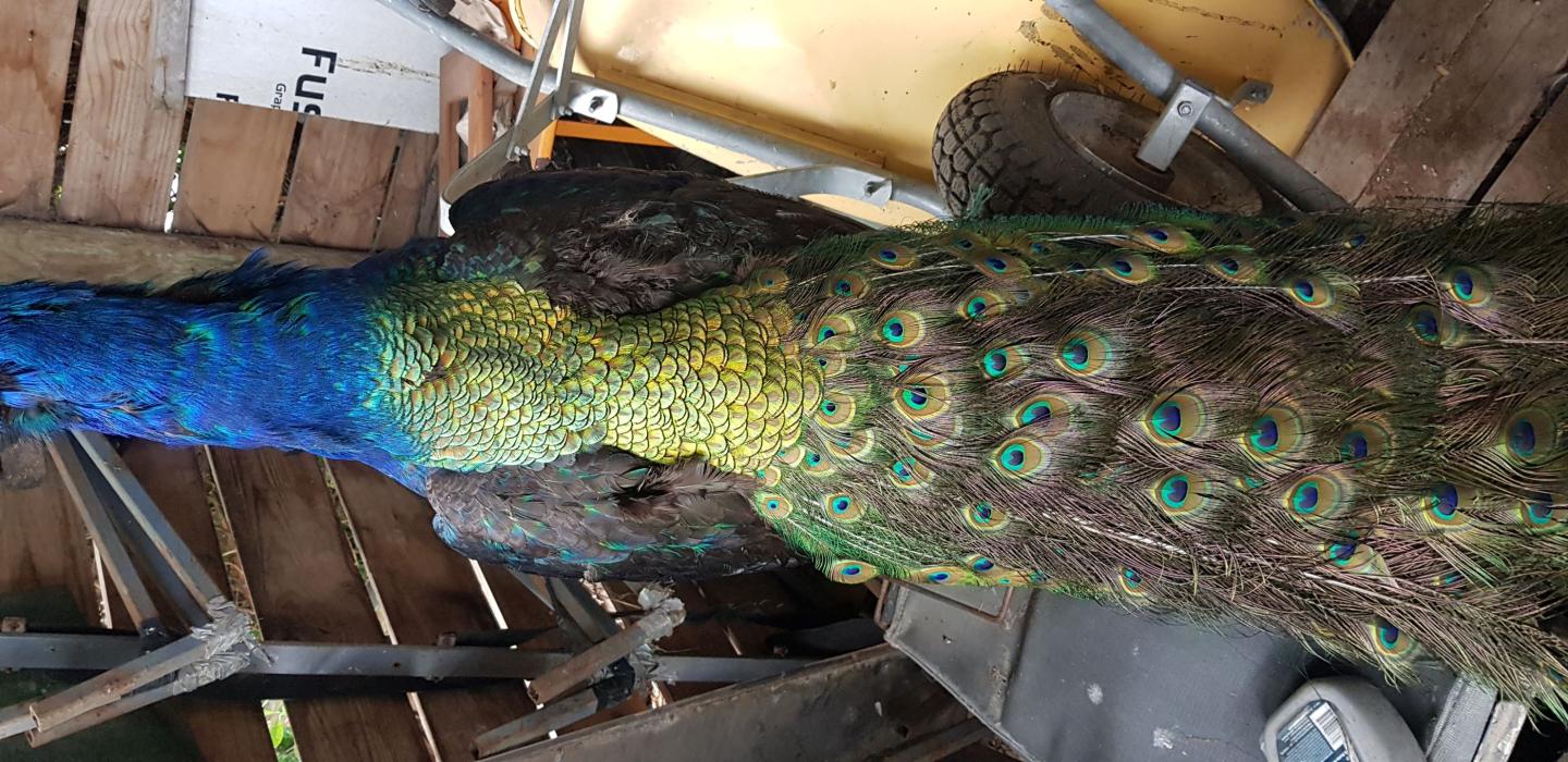 They did manage to pick up two melanistic peacocks which are pretty rare. The black and white striped plumage and quills are replaced wit dark blue/purple and black colours. The also picked up an albino hen. It was not pure white so it will be pelted instead of sent to the taxidermist.